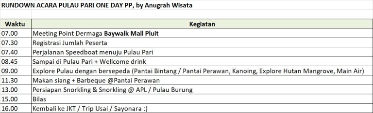 Pulau Pari adalah destinasi wisata bahari di Kepulauan Seribu yang terkenal dengan pantai berpasir putih bersih seperti Pantai Pasir Perawan, air laut jernih kehijauan, serta kehidupan bawah lautnya yang kaya (ikan badut, karang) cocok untuk snorkeling dan diving. Keunikan lainnya adalah suasana alami yang masih terjaga, dapat dijelajahi dengan sepeda, memiliki hutan bakau untuk konservasi, dan spot Sunrise/Sunset terbaik di Dermaga Bukit Matahari, menjadikannya surga kecil dekat Jakarta yang menarik untuk liburan singkat.